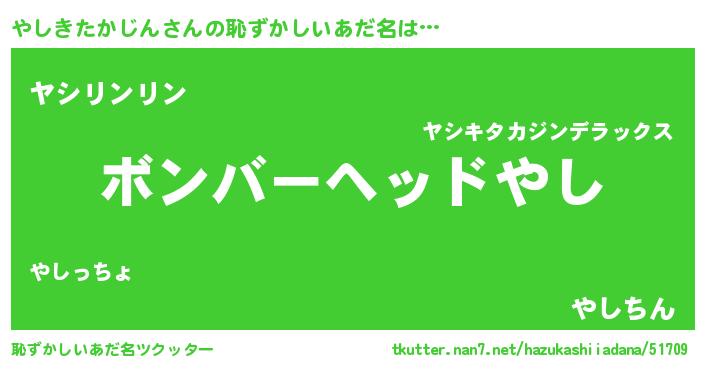 | ヘコむあだ名 | 『やしっぺ』『やしきたかじん(苦笑)』 |