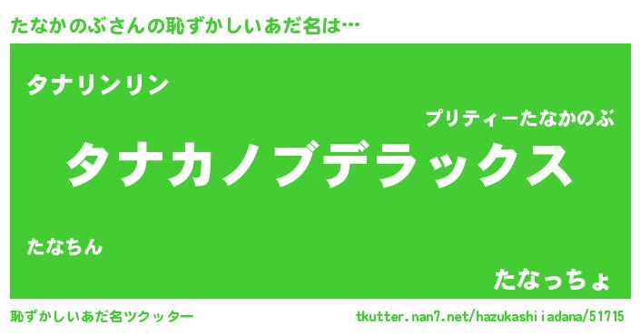 | 男性向けラノベタイトル風あだ名 | 『Re:たなかのぶから始める異世界生活』 |
