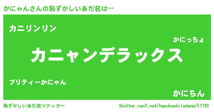 | 意味不明あだ名 | 『しいたけ科かにゃん属』『自称かにゃん』 |
