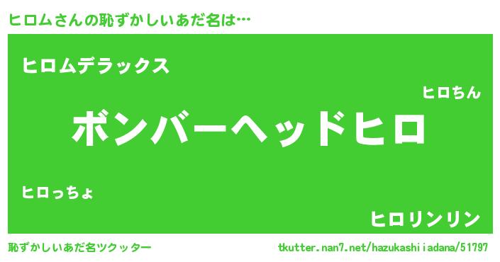 | ヘコむあだ名 | 『ヒロっ子』『ヒロム(爆)』『つくし』 |