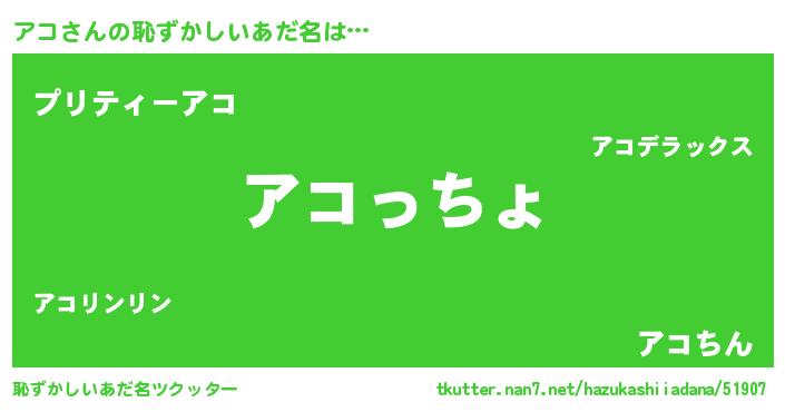| ヘコむあだ名 | 『レバニラ』『アコにー』『アコ(笑)』 |