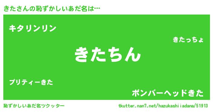 | ヘコむあだ名 | 『きた(笑)』『きたっ子』『つくし』 |