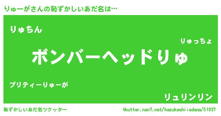 | ヒーロー風カッコイイあだ名 | 『仮面リュダー』『愛の使者りゅーが』 |