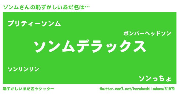| ヘコむあだ名 | 『ソンにゅー』『牛乳』『ソンお』 |