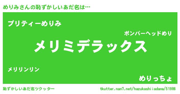 | ヒーロー風カッコイイあだ名 | 『最強戦士メリミ』『スーパーメリミ』 |