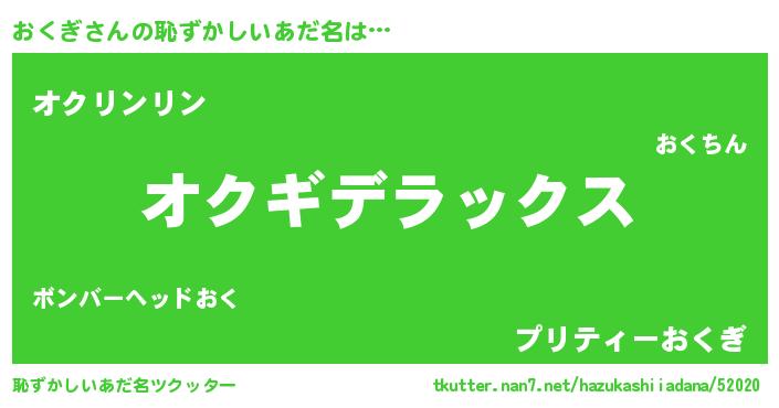 | 男性向けラノベタイトル風あだ名 | 『この素晴らしい世界におくぎを!』 |