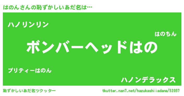 | ヘコむあだ名 | 『はのぷりん』『はのん(笑)』 |