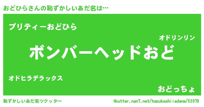 | ヘコむあだ名 | 『おどっふぃ~』『豆乳』『おどお』 |