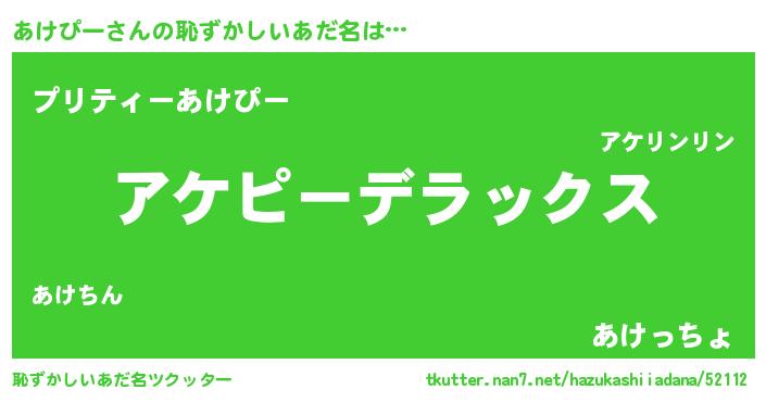 | ヘコむあだ名 | 『あけもー』『なまこ酢』『あけ太郎』 |