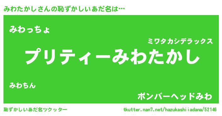| ヒーロー風カッコイイあだ名 | 『スーパーミワタカシ』『仮面ミワダー』 |