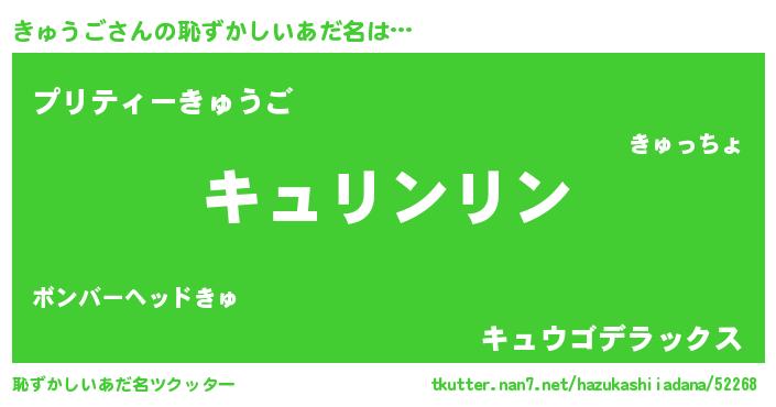 | 料理風あだ名 | 『きゅうごのカルパッチョ風』 |