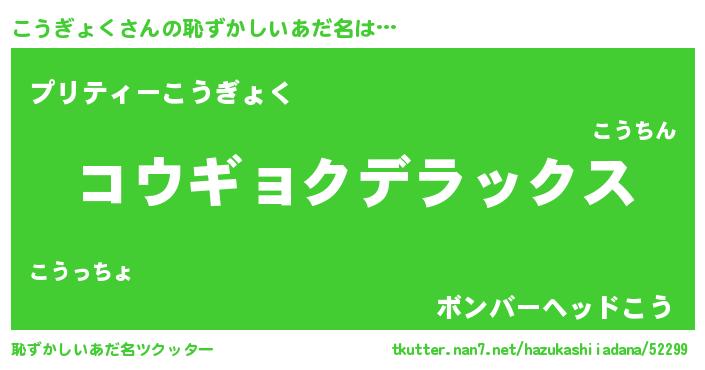 | ヘコむあだ名 | 『こうっふぃ~』『こうぎょく(小並感)』 |
