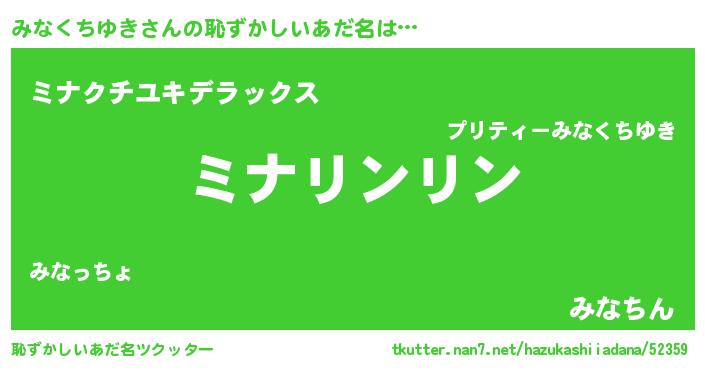 | 男性向けラノベタイトル風あだ名 | 『みなくちゆきの嫁は女の子じゃないと思った?』 |