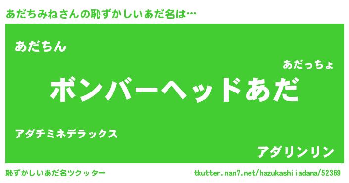| ヘコむあだ名 | 『あだちみね(笑)』『あだを』 |