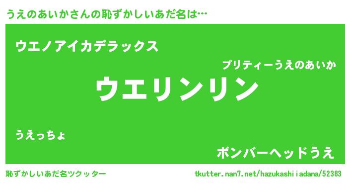 | 意味不明あだ名 | 『とにかく怪しいうえのあいか』 |