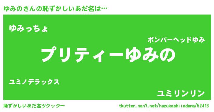| 意味不明あだ名 | 『ペロリンゆみの』『ゆみのフォーエバー』 |