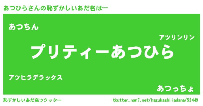 | ヒーロー風カッコイイあだ名 | 『スーパーアツヒラ』『仮面アツダー』 |