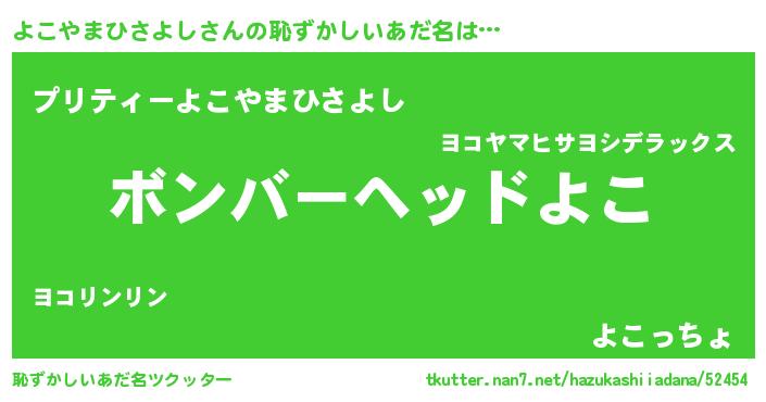 | ヘコむあだ名 | 『よこにゅー』『豆乳』『よこぷりん』 |