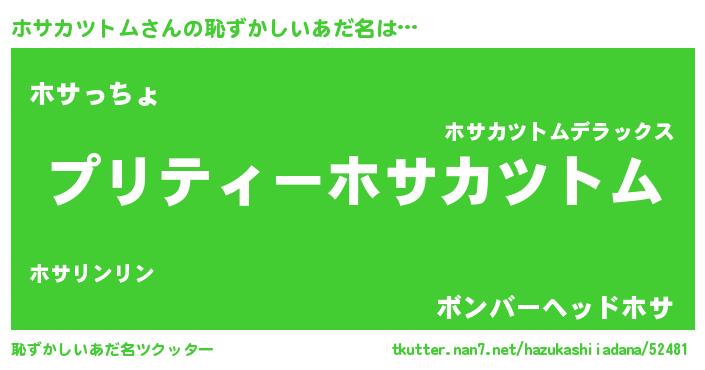 | ヒーロー風カッコイイあだ名 | 『スーパーホサカツトム』『仮面ホサダー』 |