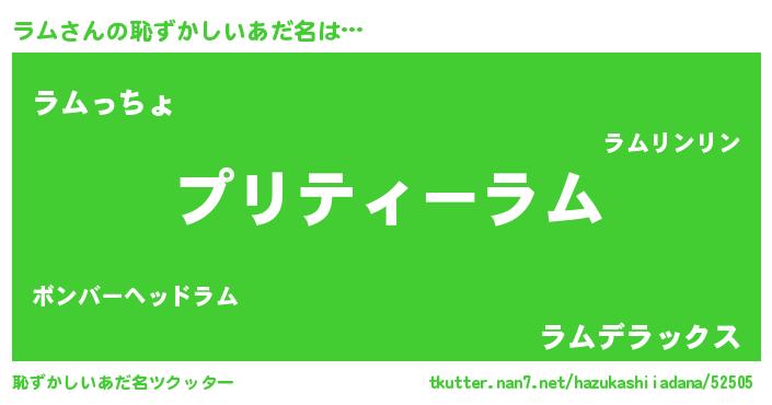 | ポケモン風あだ名 | 『ラムチュウ』『ラムキング』 |