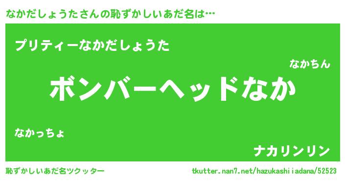 | 男性向けラノベタイトル風あだ名 | 『ナカダショウタスレイヤー』 |