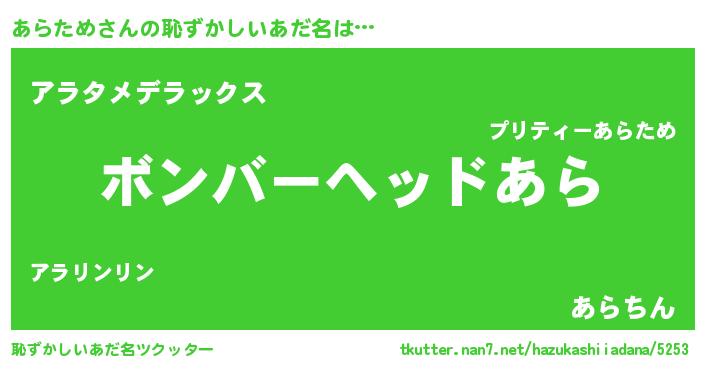 | ヘコむあだ名 | 『あらため(震え声)』『あらにゅー』 |