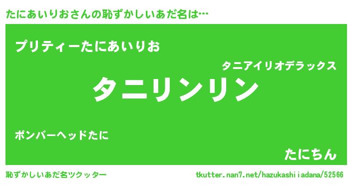| 男性向けラノベタイトル風あだ名 | 『たにあいりおの嫁は女の子じゃないと思った?』 |