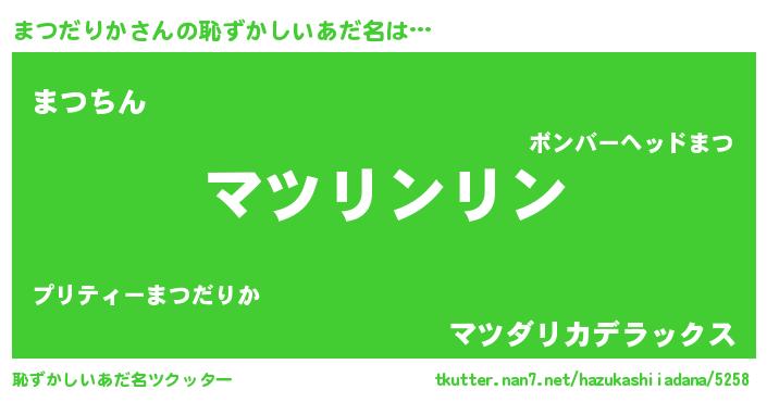 | ヘコむあだ名 | 『まつっ子』『まつだりか(笑)』 |