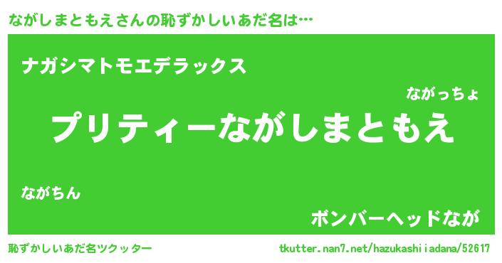 | 男性向けラノベタイトル風あだ名 | 『転生したらながしまともえだった件』 |