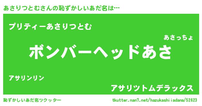 | 男性向けラノベタイトル風あだ名 | 『あさりつとむ~年齢イコール彼女いない歴の魔法使い~』 |