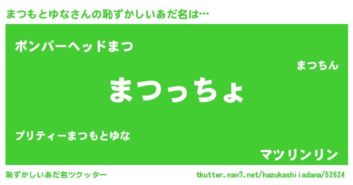 | 男性向けラノベタイトル風あだ名 | 『この素晴らしい世界にまつもとゆなを!』 |