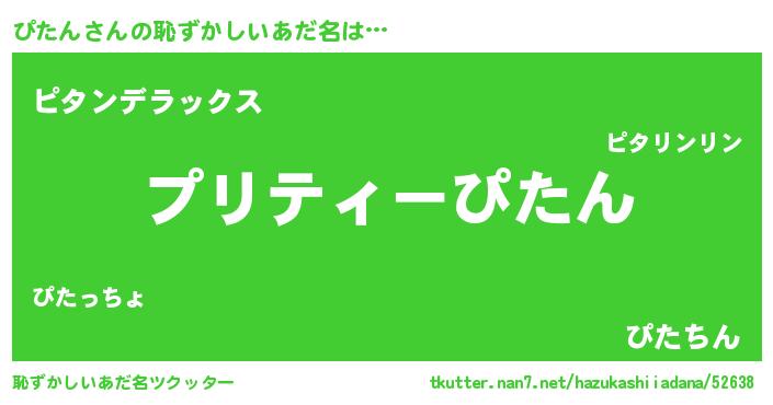 | 意味不明あだ名 | 『ペロリンぴたん』『自称ぴたん』 |
