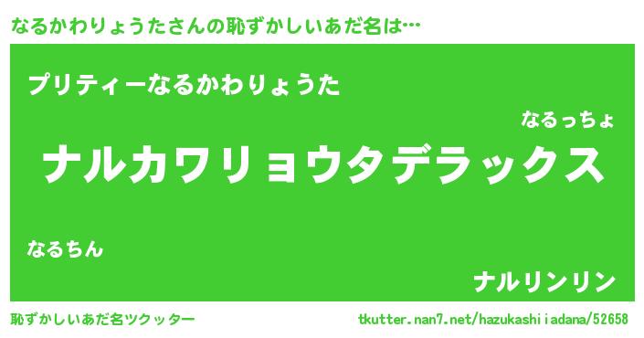 | 男性向けラノベタイトル風あだ名 | 『ナルカワリョウタスレイヤー』 |