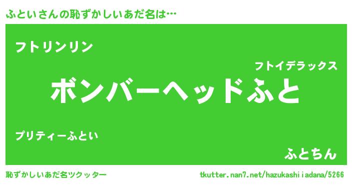 | 男性向けラノベタイトル風あだ名 | 『この素晴らしい世界にふといを!』 |