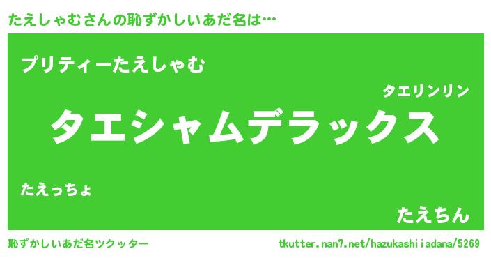 | 伝説のあだ名 | 『伝説のスナイパーたえしゃむ』 |