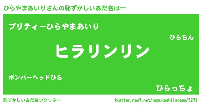 | ヒーロー風カッコイイあだ名 | 『魔戒騎士ヒラ』『ネオヒラヤマアイリ』 |