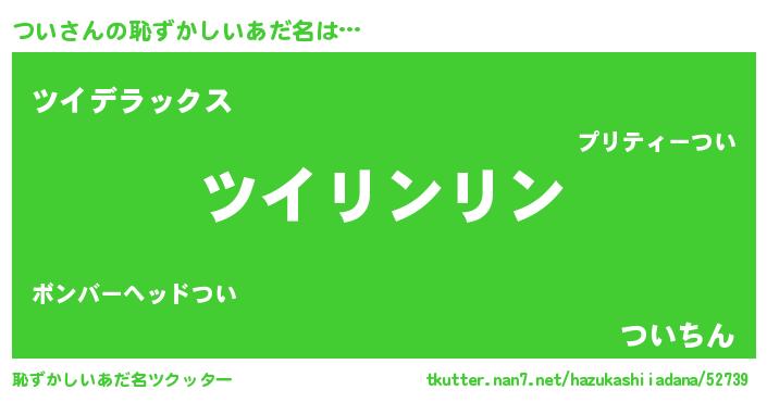 | ポケモン風あだ名 | 『ツーイイ』『ツイキング』『ヒツイ』 |