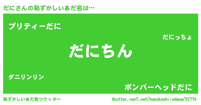 | ヘコむあだ名 | 『だに(苦笑)』『だににー』『豆乳』 |