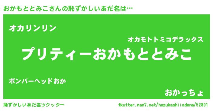 | 胡散臭い通販商品みたいなあだ名 | 『必ず成功する霊験あらたかなお札…その名も「おかもととみこ」』 |