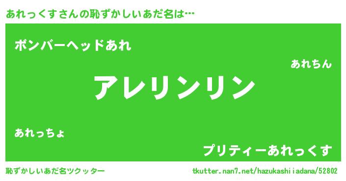 | 女子向けラノベタイトル風あだ名 | 『あれっくすは平凡を望む』 |