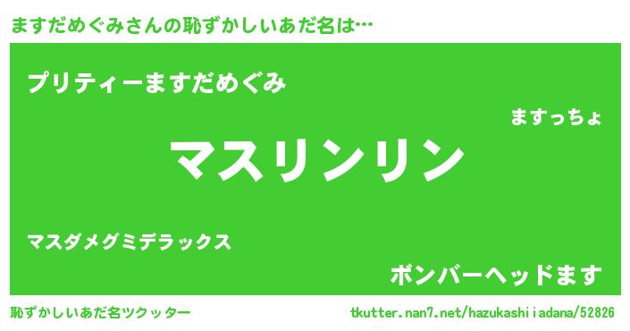 | 男性向けラノベタイトル風あだ名 | 『ますだめぐみの嫁は女の子じゃないと思った?』 |