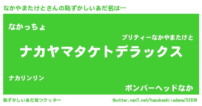 | 意味不明あだ名 | 『自称なかやまたけと』 |