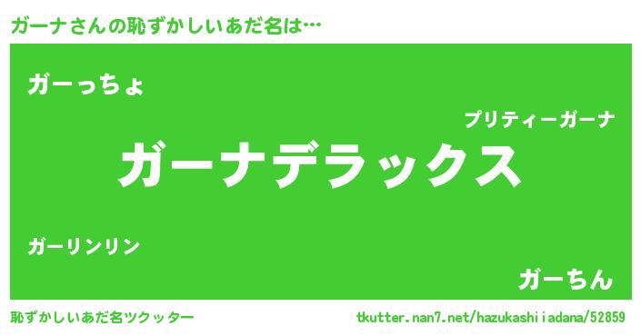 | ヘコむあだ名 | 『なまこ酢』『ガーナ(笑)』『ガーを』 |