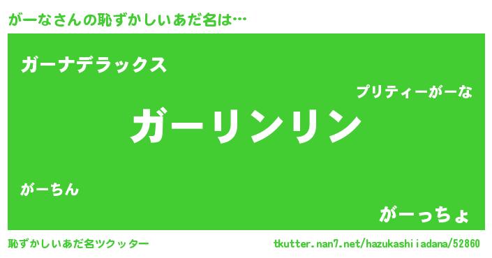 | 意味不明あだ名 | 『とにかく怪しいがーな』『自称がーな』 |