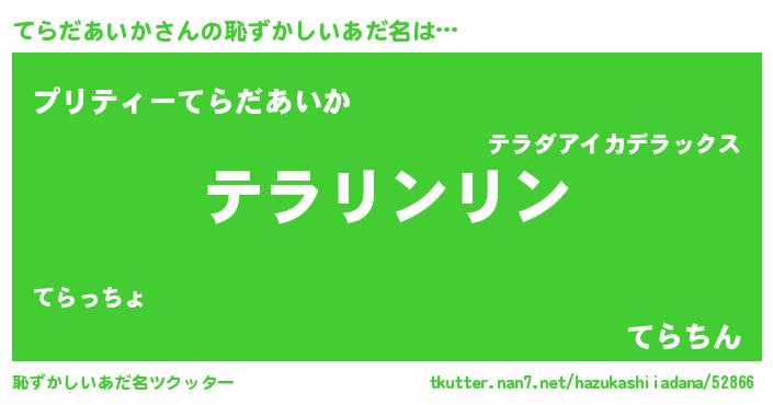 | 意味不明あだ名 | 『住所不定無職てらだあいか(6歳)』 |