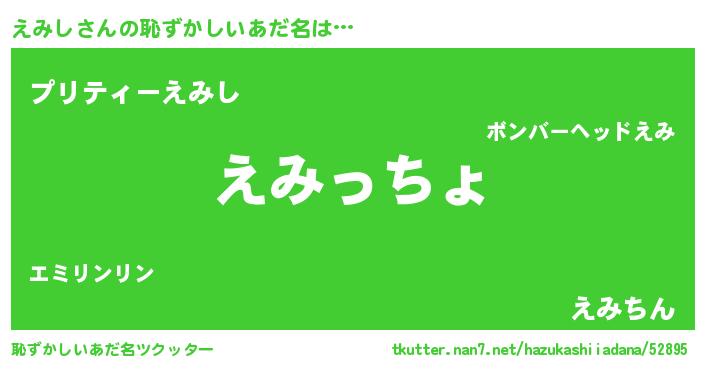 | ヘコむあだ名 | 『豆乳』『えみにー』『えみっ子』 |
