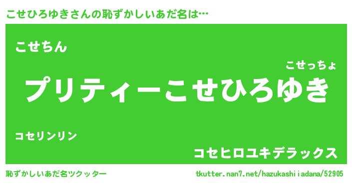 | 肩書あだ名 | 『こせひろゆき中将』『こせひろゆき社長』 |