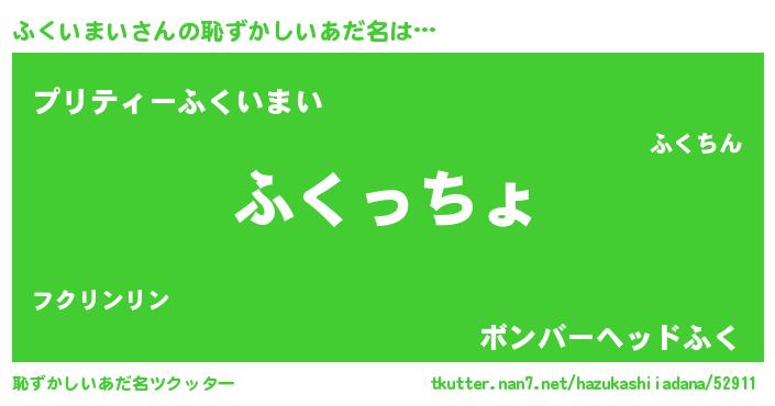 | 男性向けラノベタイトル風あだ名 | 『ふくいまい~年齢イコール彼女いない歴の魔法使い~』 |