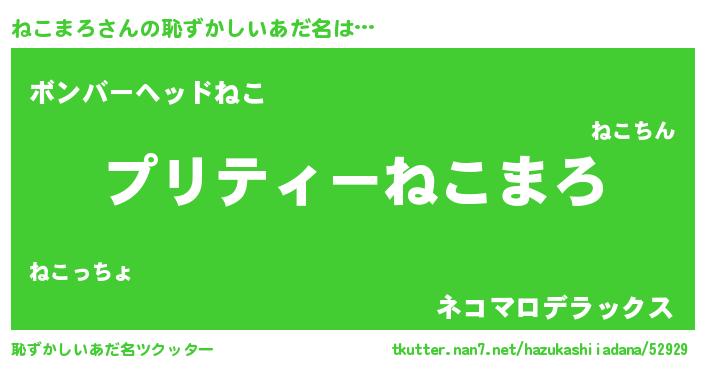 | 欧米人風あだ名 | 『マイケルねこまろ』『ダニエルねこまろ』 |