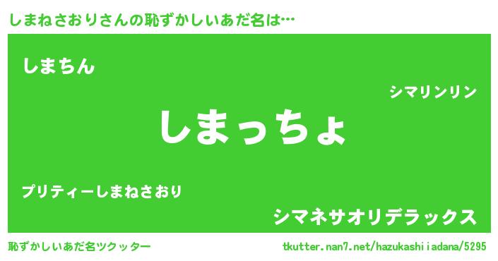 | 男性向けラノベタイトル風あだ名 | 『この素晴らしい世界にしまねさおりを!』 |